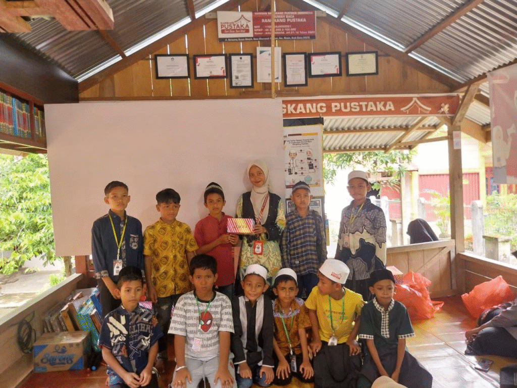 Aceh Utara_ Rangkang Pustaka kembali melaksanakan kegiatan belajar mengejar dengan suasana yang seru dan penuh makna pada kegiatan pada pertemuan ke 126 pada Minggu, (24/08/2025)